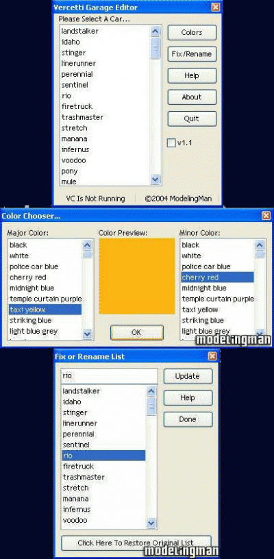Mit diesem Tool kann man sich jedes Auto in jeder Farbe in die Garage der Vercetti Mansion stellen.![]() | |